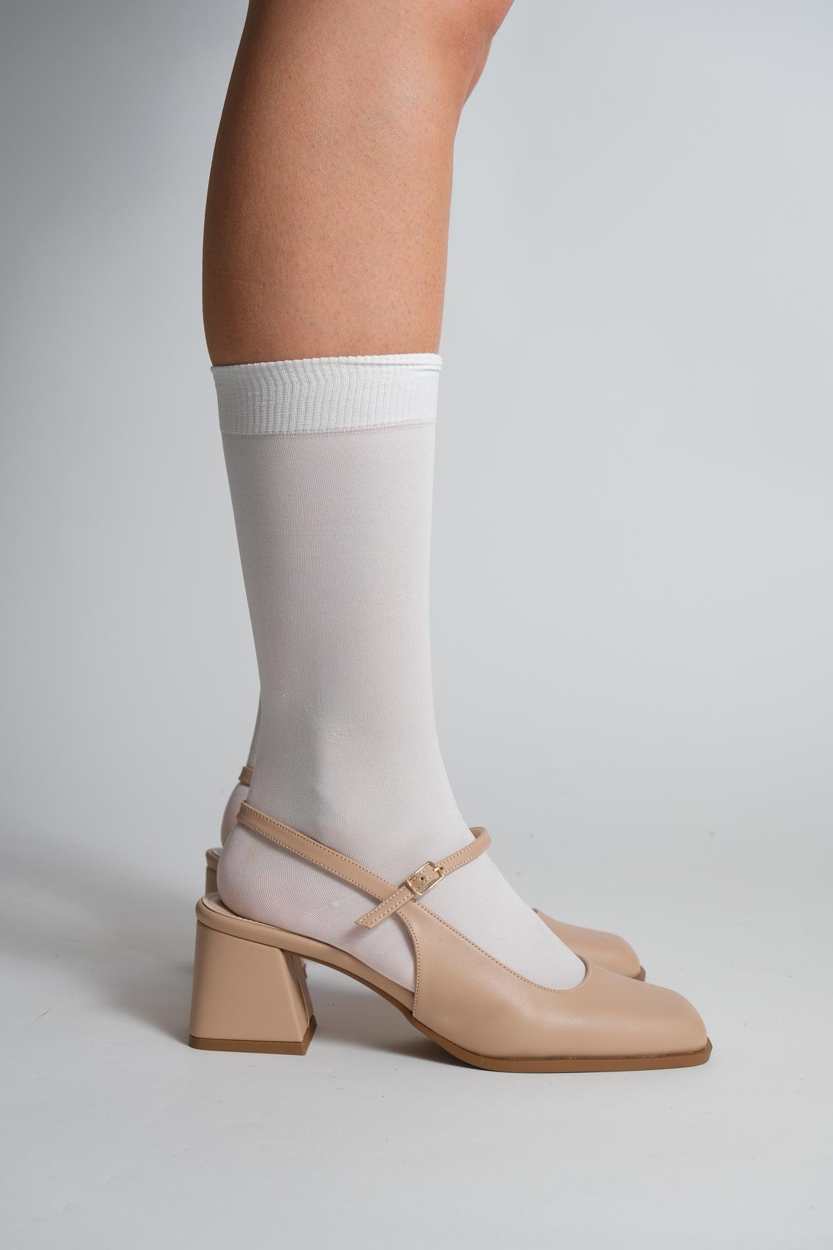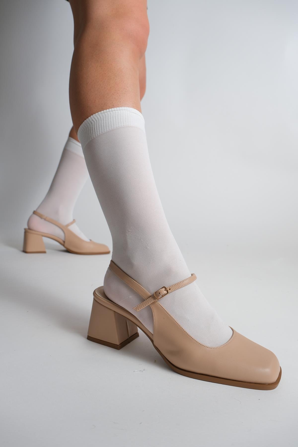 Aaron Bej Tek Bantlı Arkası Açık Topuklu Ayakkabı