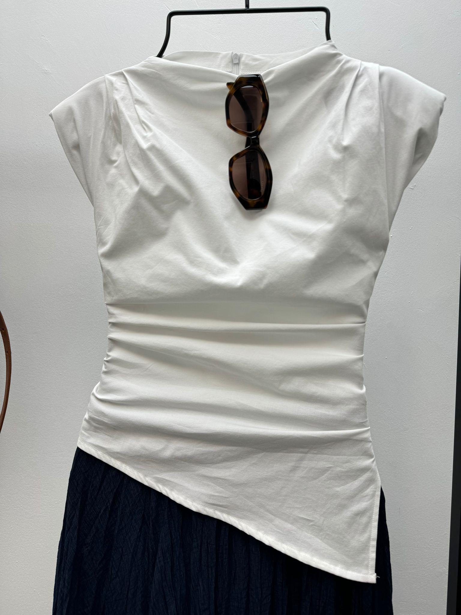 ASİMETRİ VATKALI BEYAZ BLUZ T-SHİRT