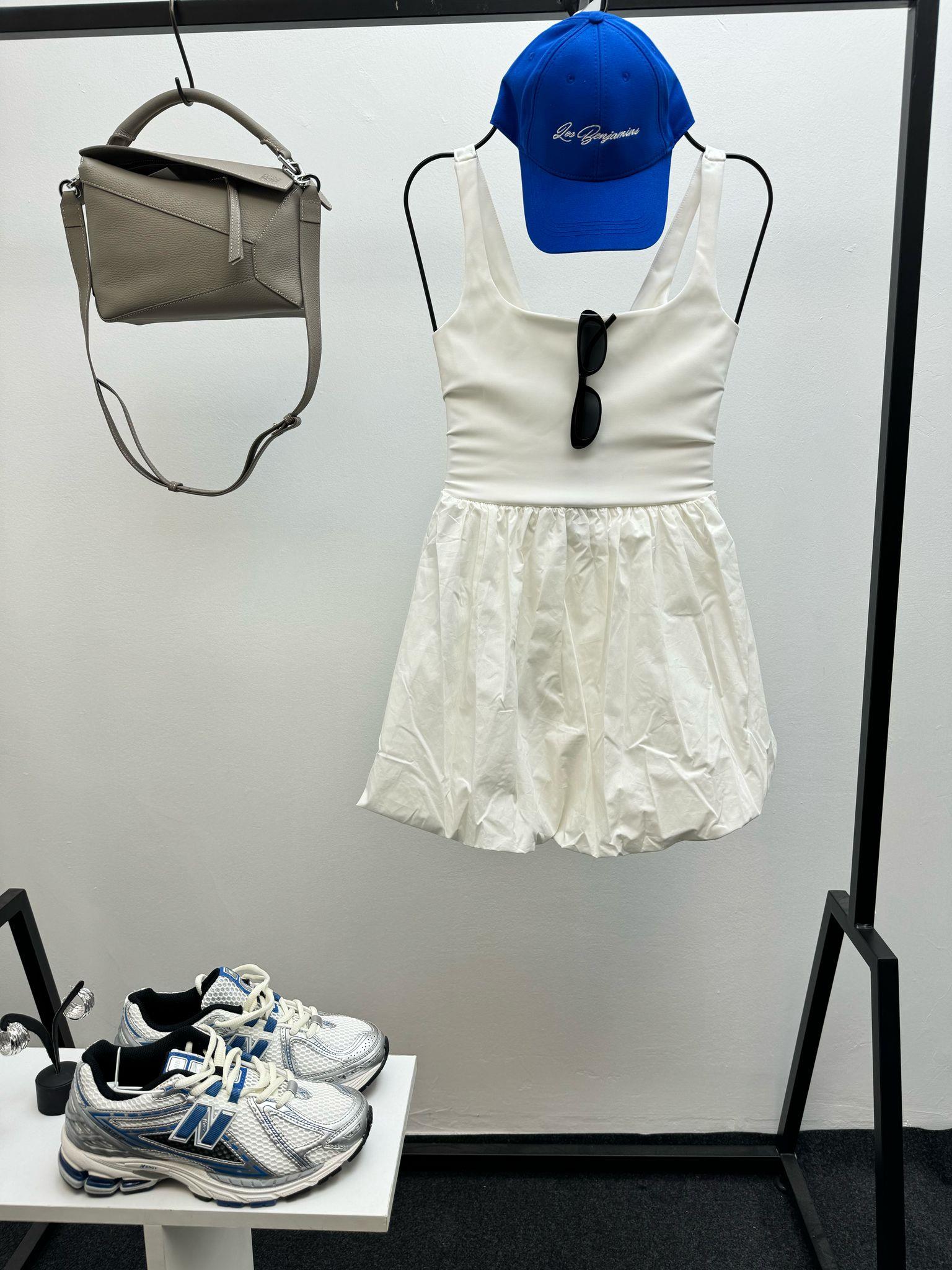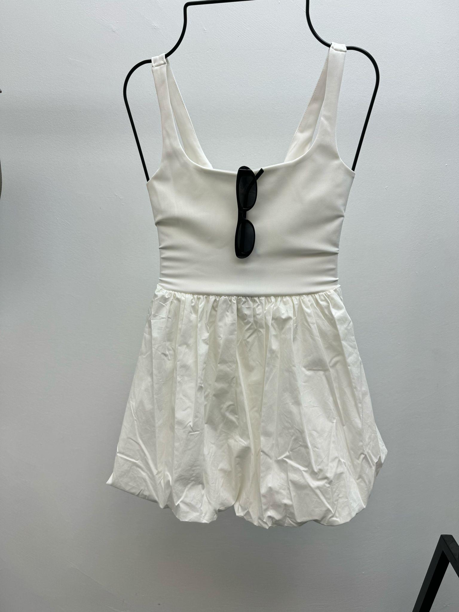 BALON ETEKLİ BEYAZ ELBİSE