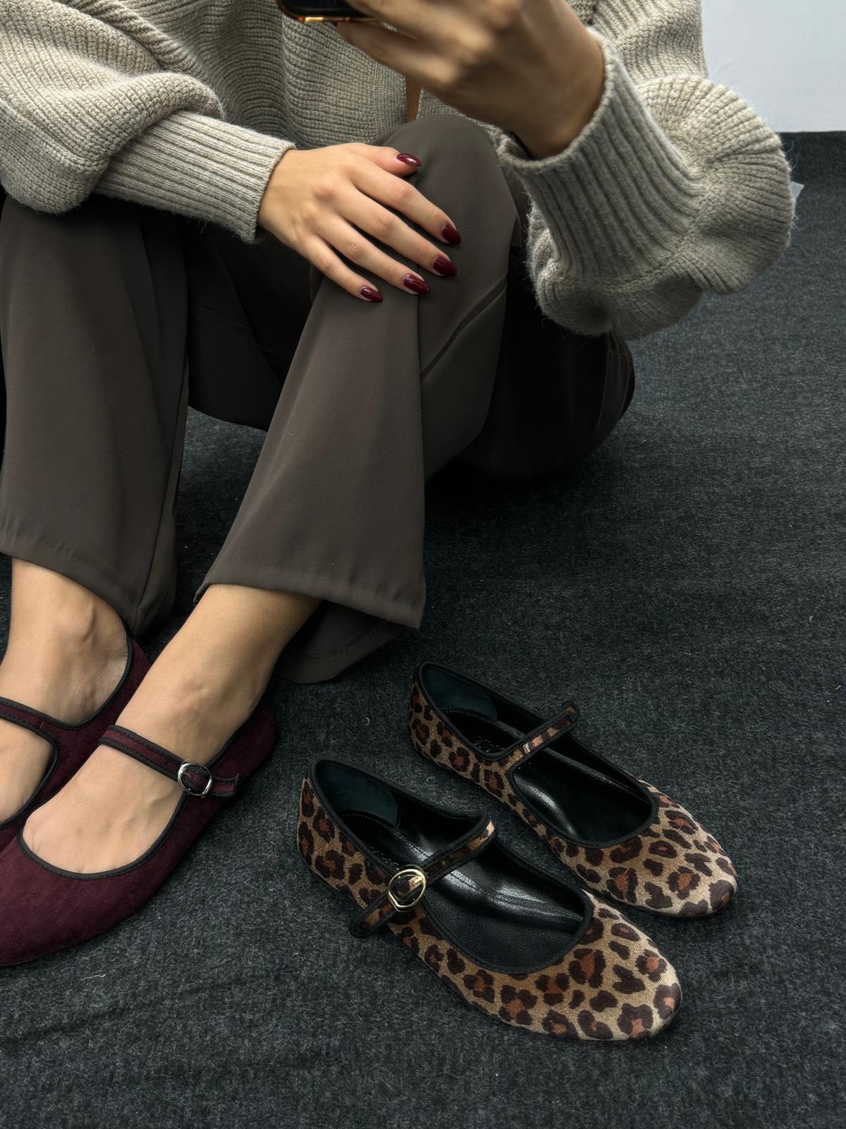 Isla Leopar Tek Bantlı Süet Babet Isla Bordo Tek Bantlı Süet Babet