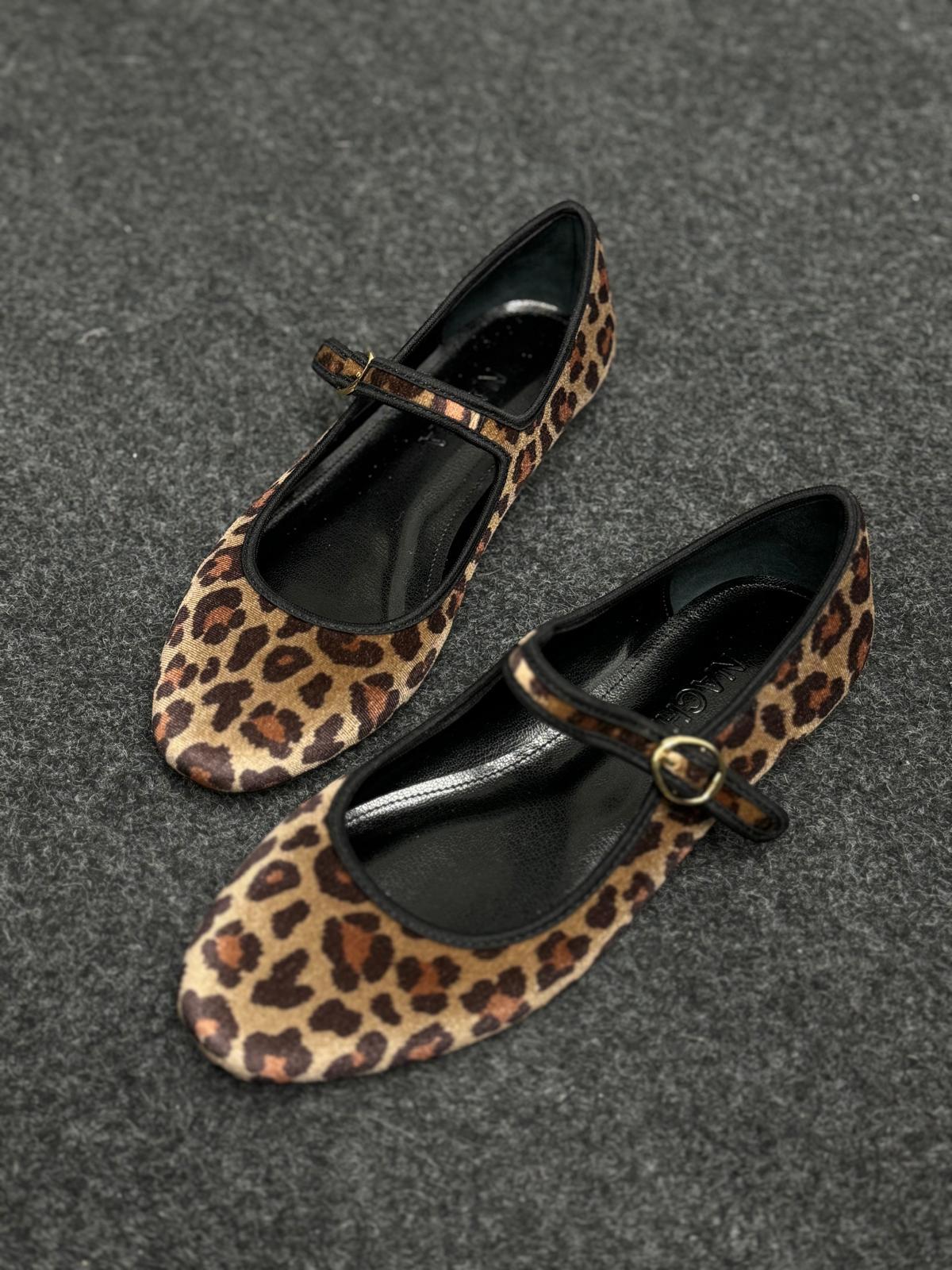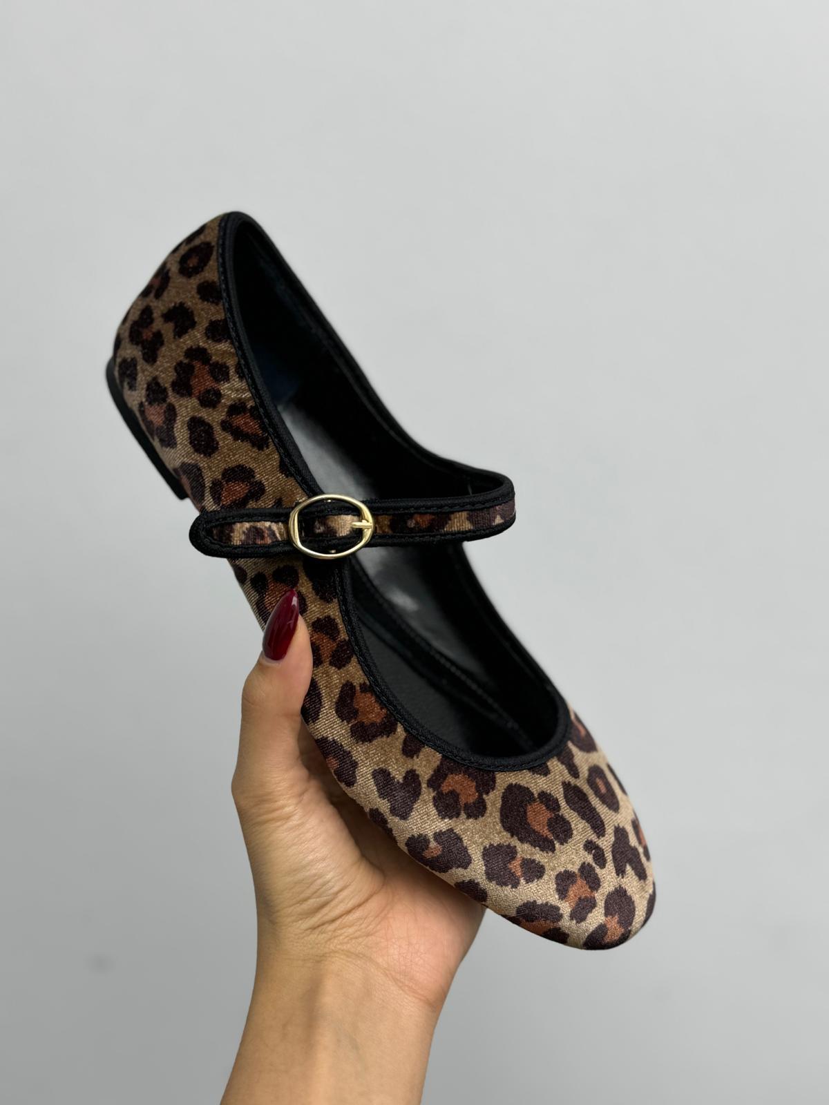 Isla Bordo Tek Bantlı Süet Babet Isla Leopar Tek Bantlı Süet Babet