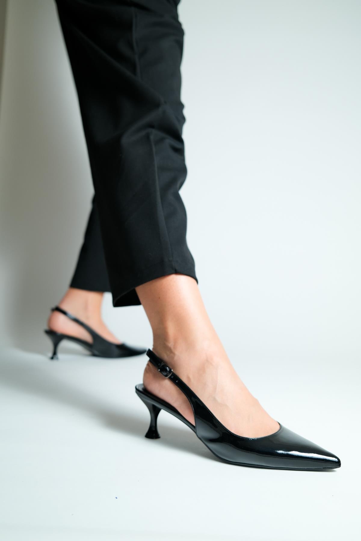 Jasper Siyah Rugan Arkası Açık Topuklu Ayakkabı