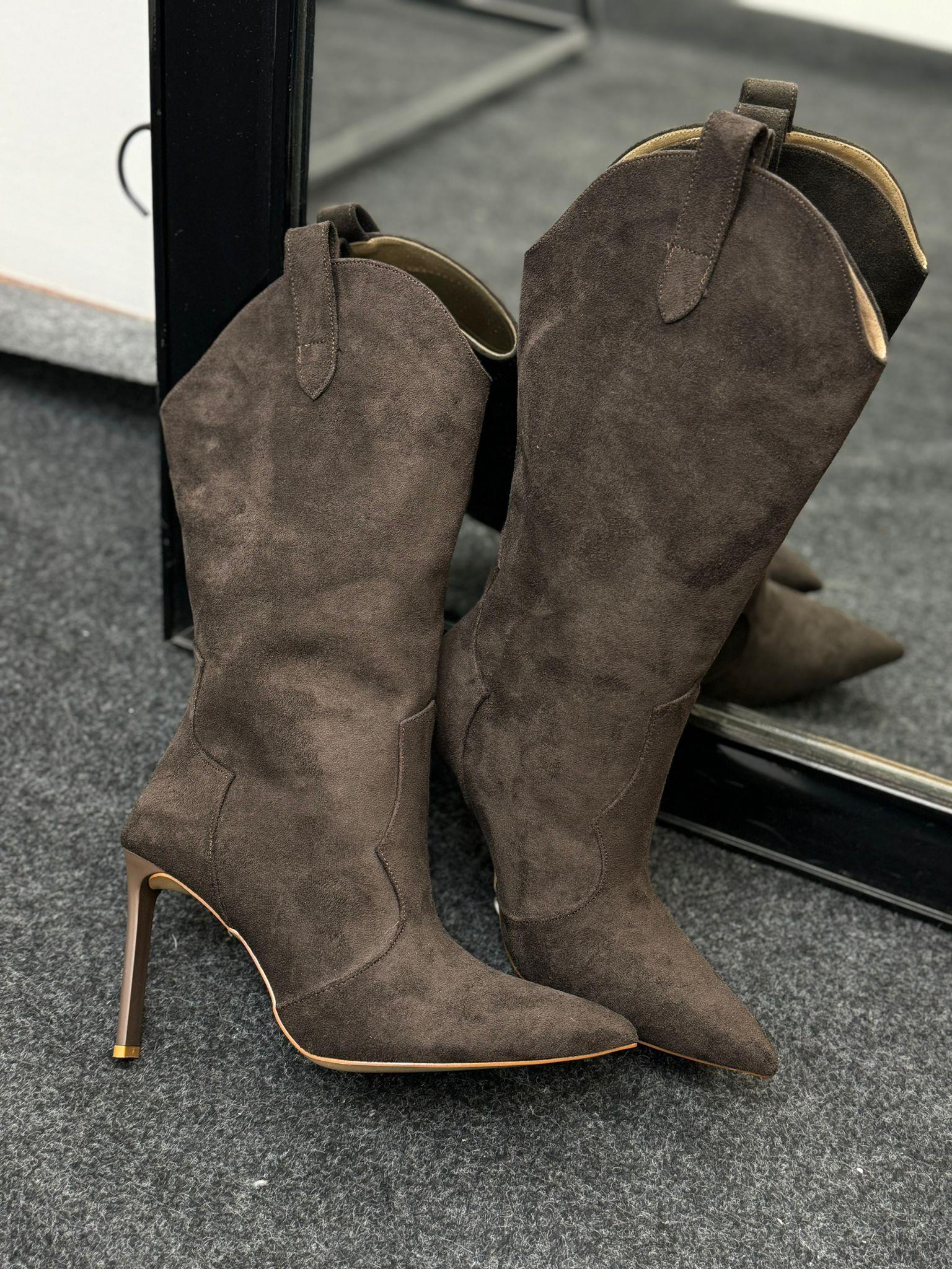 Ray Kahverengi Süet Sivri Burun Topuklu Çizme