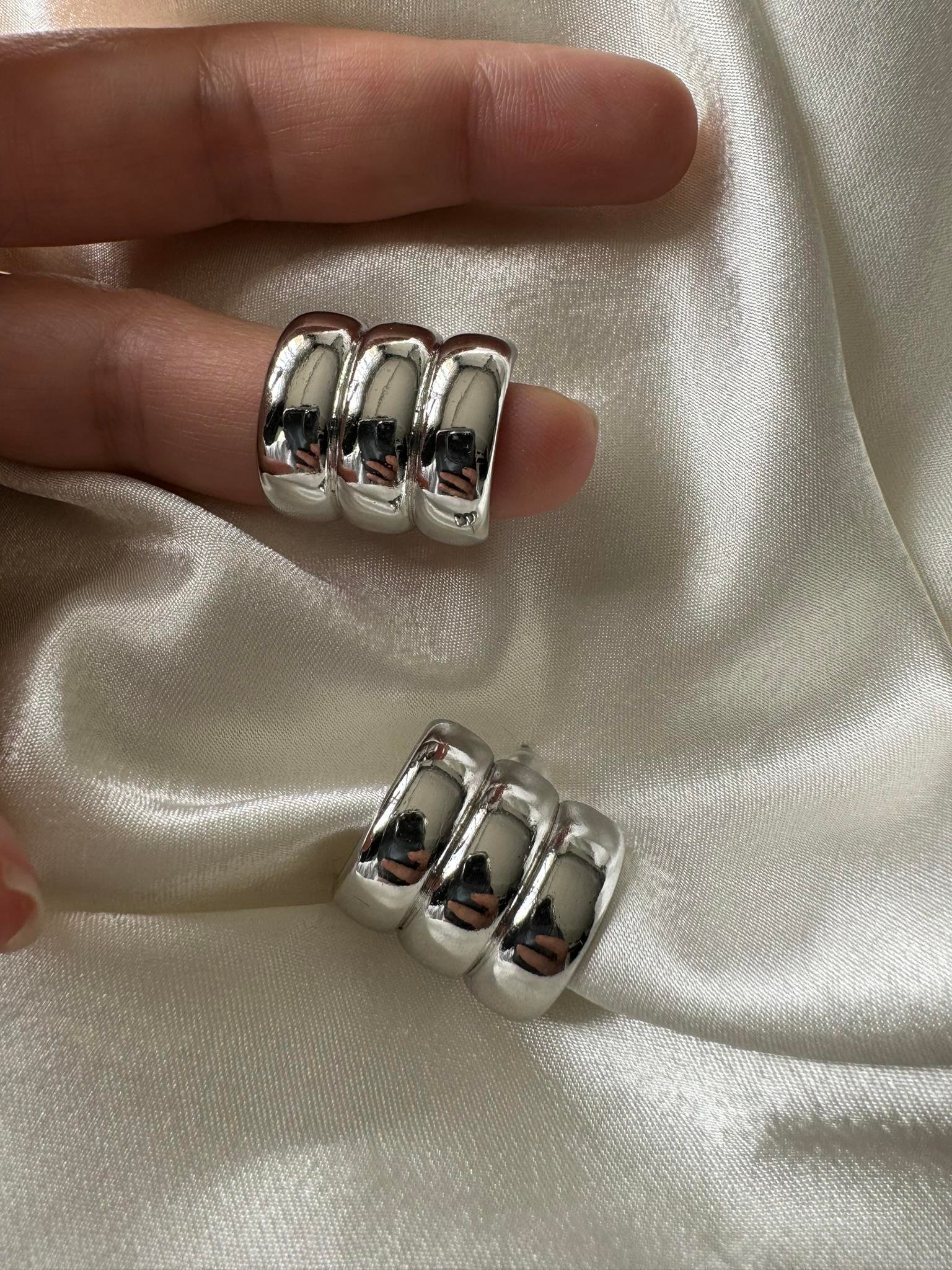 Üçlü Görünüm Gümüş Halka Küpe